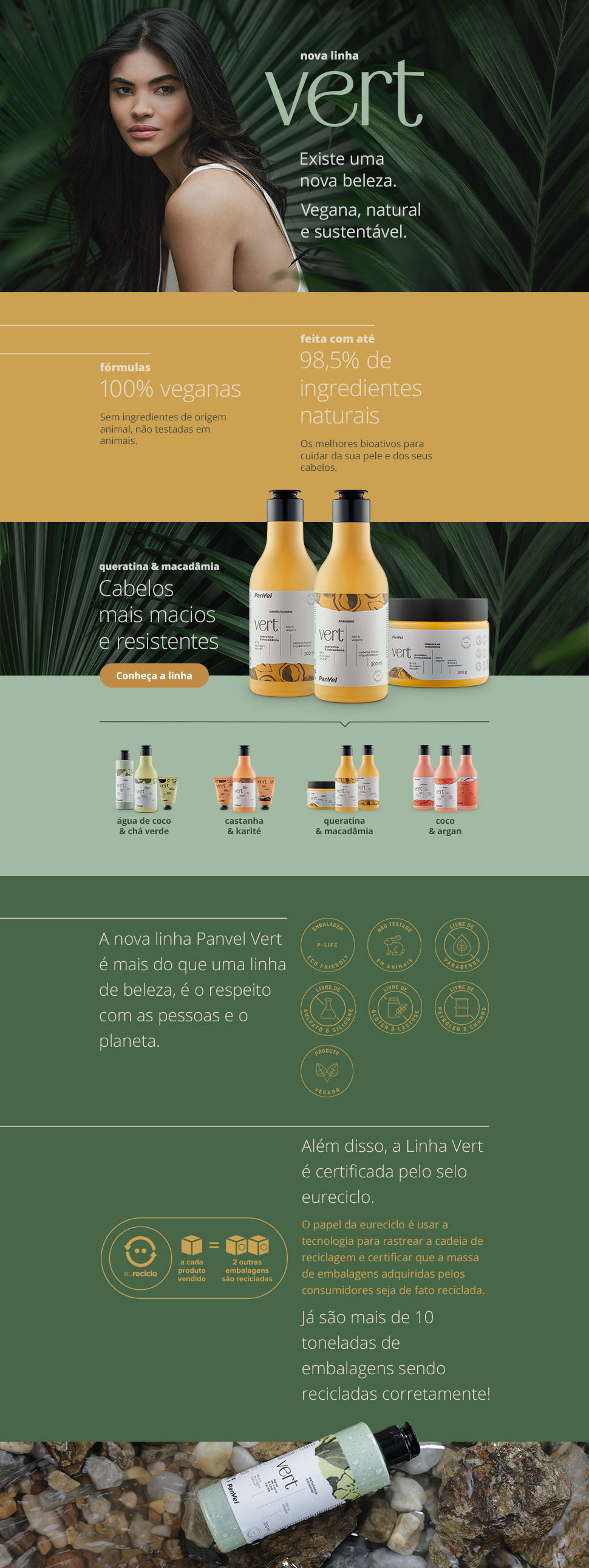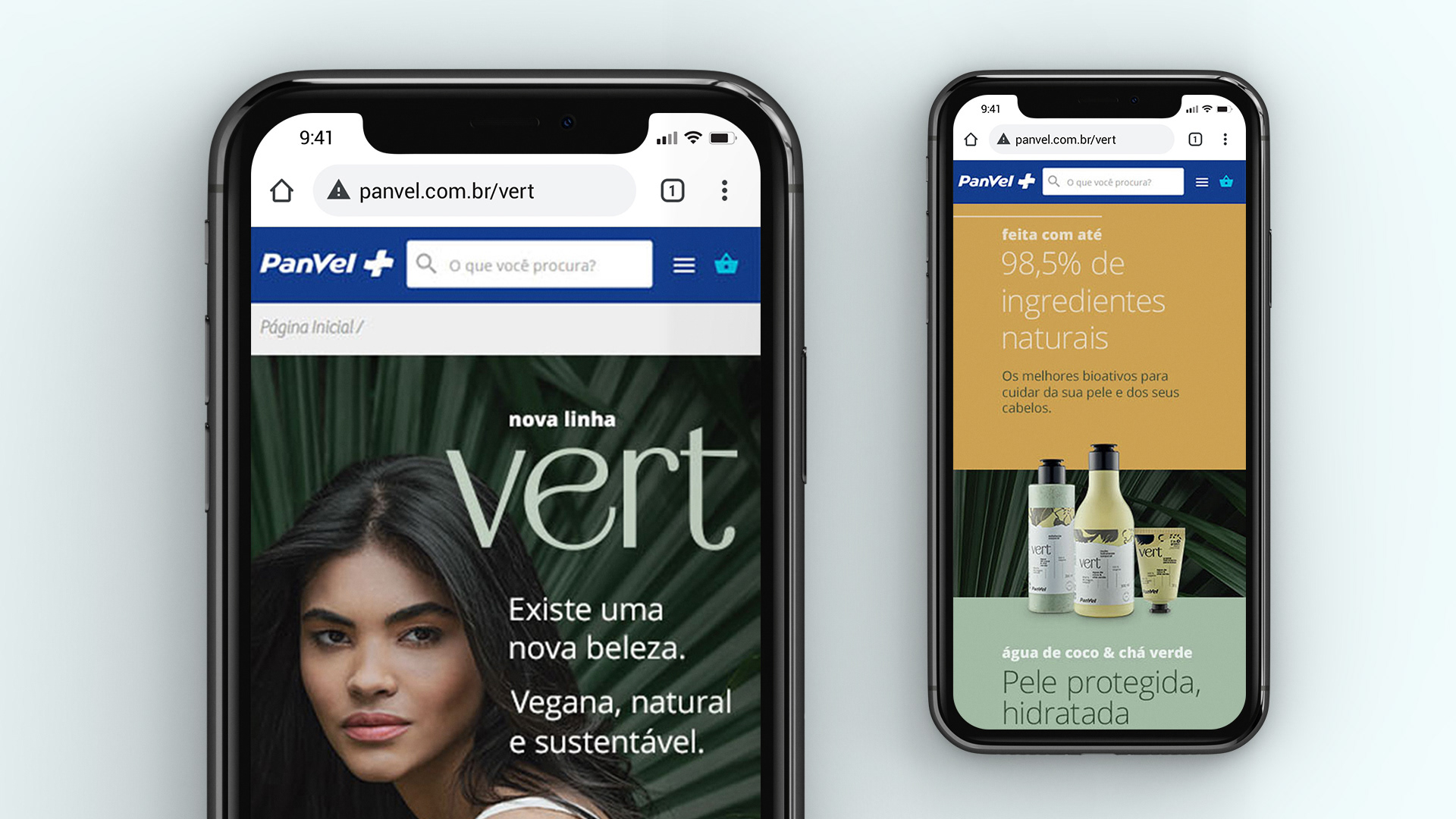 I developed the interface for this landing page for the launch campaign of the Vert cosmetic line from Panvel pharmacies.